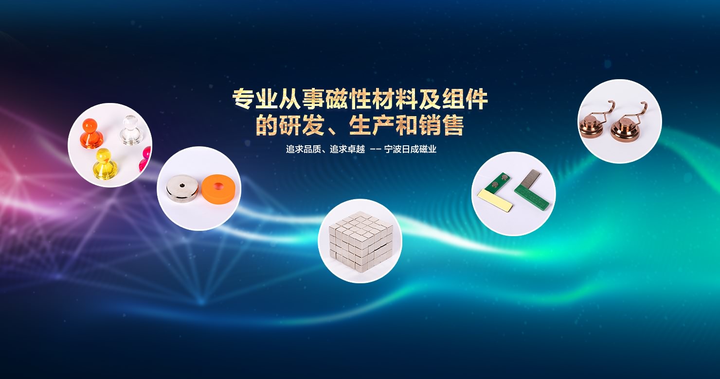 寧波日成磁性材料有限公司是一家專業從事釹鐵硼(NdFeB)永磁材料的研究、生產加工、開發與一體的高科技新型企業。現具備年加工生產800噸高性能高要求釹鐵硼的能力。公司采用世界先進的無氧制作工藝,并依托強大的后道加工能力,主要生產和銷售磁性器件、磁性工具、磁性銘牌、磁性掛鉤、磁性吸丁 ...